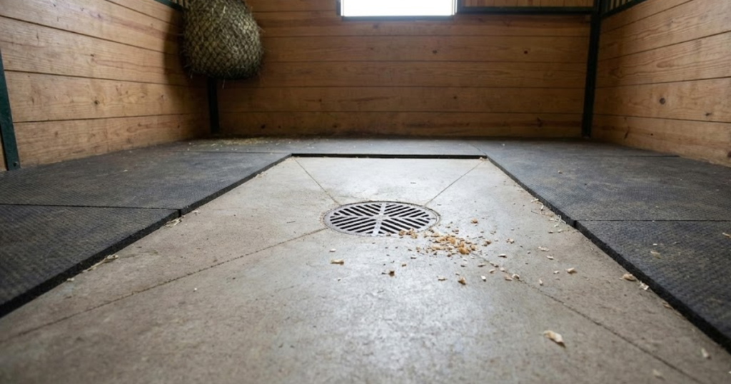 High-end barns often use hidden drainage systems to move liquids away from the stall surface quickly.