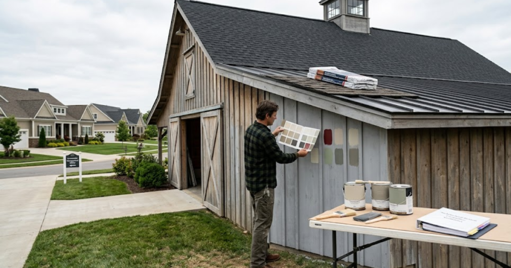 Within an HOA, your barn design is not just a personal choice. Exterior colors, roofing materials, and outbuilding appearance can all be controlled by legally enforceable covenant rules.